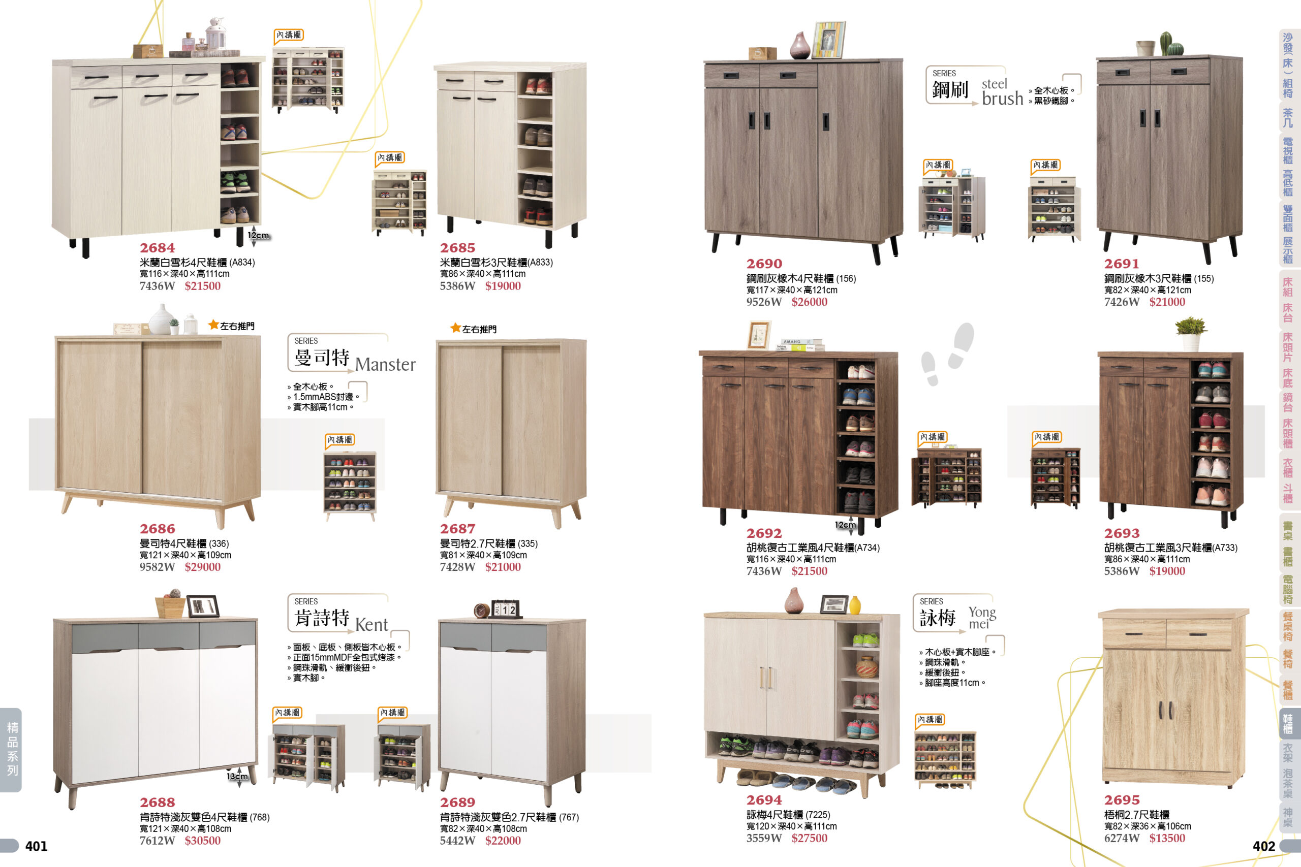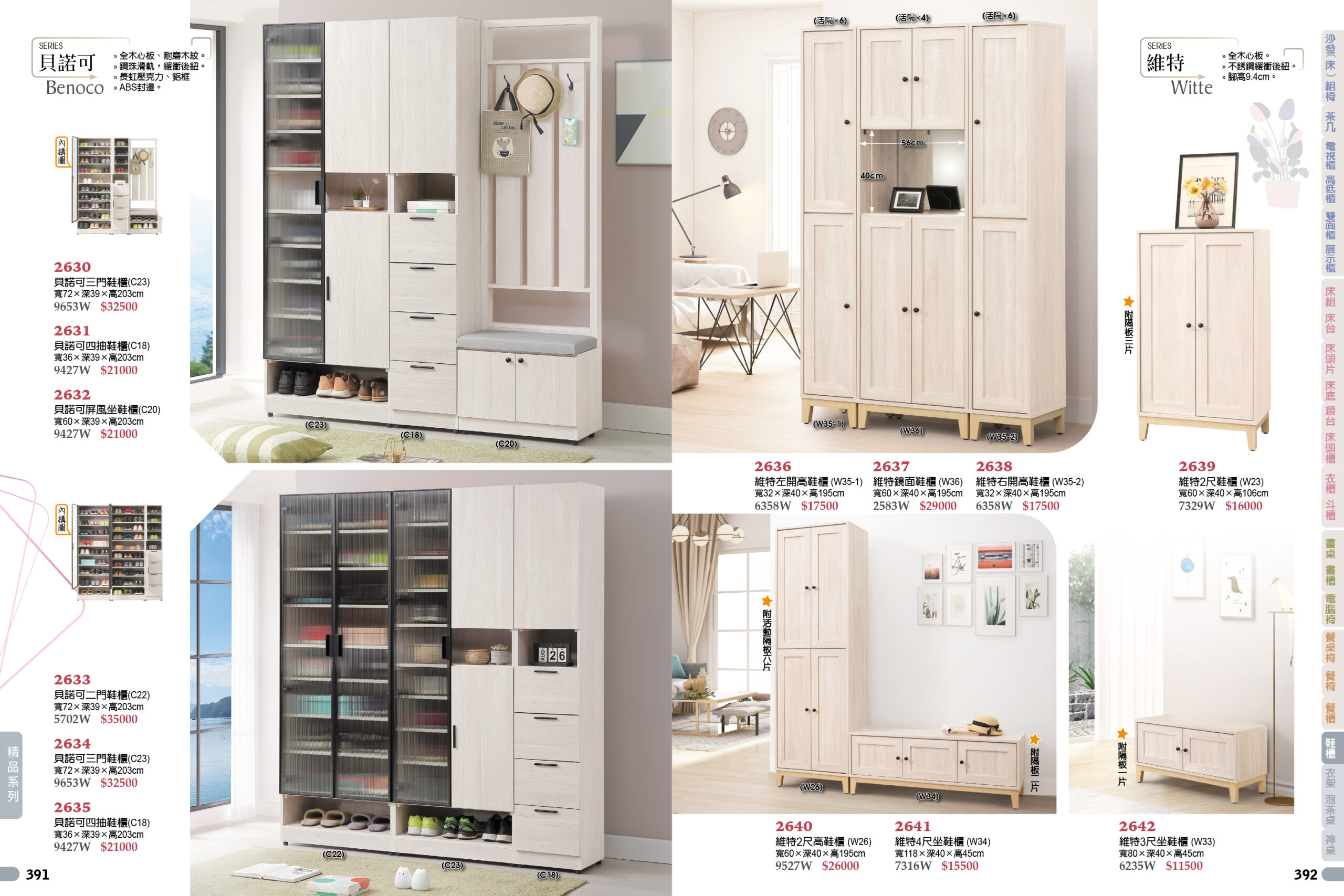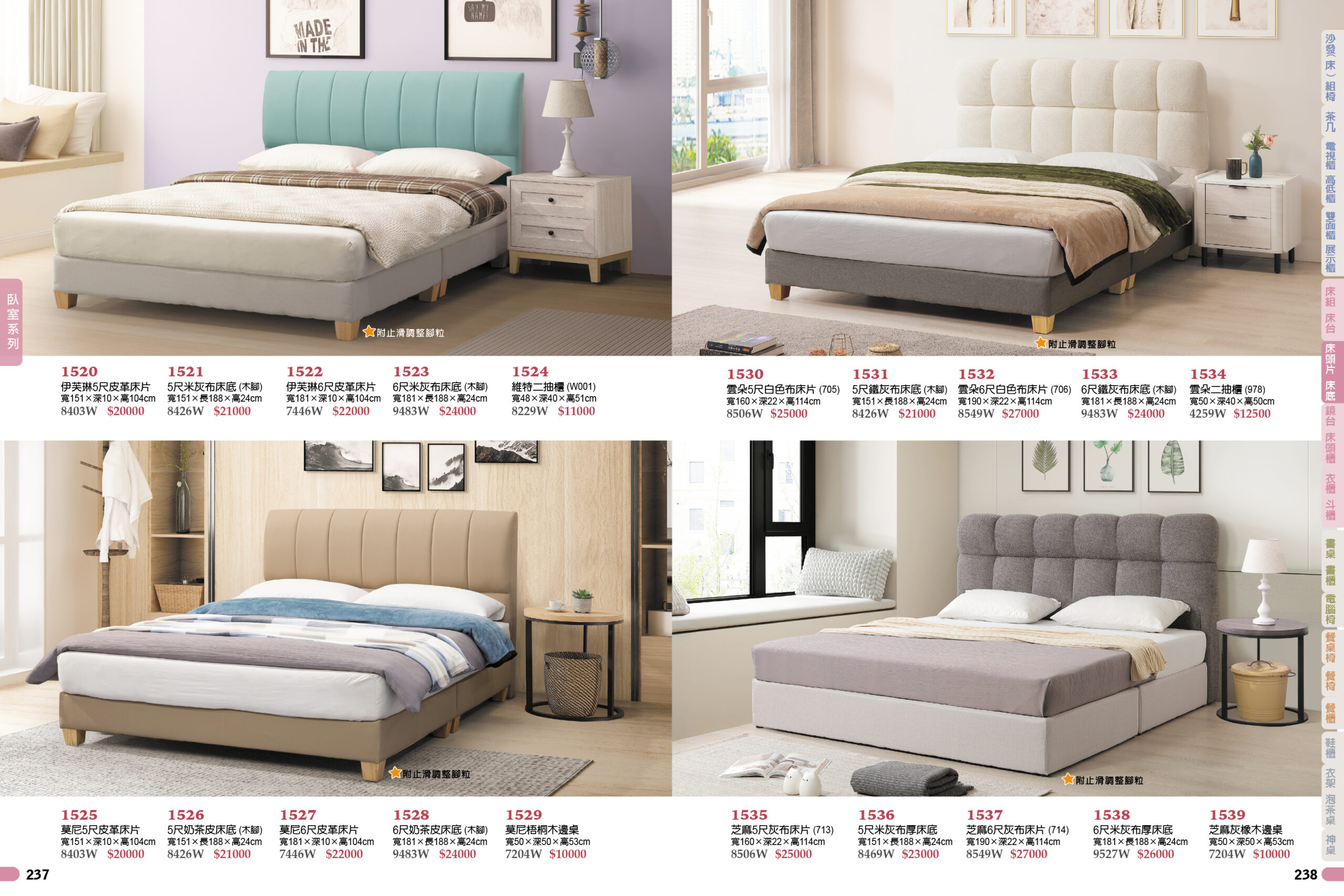 furniture BW工廠家具型錄 現成家具型錄 目錄上的價格均為牌價,報價請聯絡LINE客服 最佳體驗線上目錄,建議電腦觀看 本店有軟裝師可為您配置家具 現成家具型錄 # 聯絡方式 可來電聯絡客服06-2520489或是加入官方LINE 點選加LINE 臥室 客廳 餐廳 書房 鞋櫃.吊籃